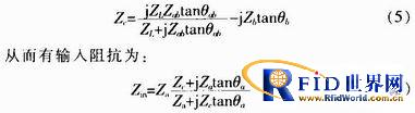 定義Zin為天線的輸入阻抗,圖3中所示的虛線框內為天線振子臂和接地板的等效輸入阻抗Zc。Za為饋線的特性阻抗,可由1/4阻抗變換器轉換得到。Zb為短路線的特性阻抗,Zab為偶極子天線臂之間的縫隙等效特性阻抗。用θa、θb和θab代表各部分的電長度,則根據傳輸線理論分析如下: