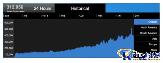 York表示:“我們最近的預測是,IPv6會在今年達到10%的部署率”。IPv4擁有“2的32次方”的地址,約為43億——盡管看起來似乎很多,但是IPv4早已難以為繼。