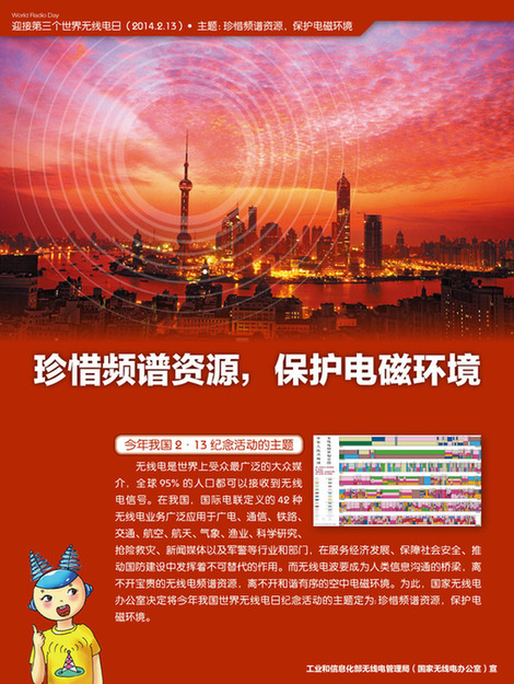 2月13日,全球將迎來了第三個“世界無線電日”(World Radio Day)。據悉,國家工信部將今年紀念無線電日主題定為“珍惜頻譜資源,保護電磁環境”,旨在提高全社會對無線電頻譜資源重要性認識,倡導大家自覺遵守無線電管理法規,維護空中電波秩序。