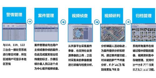 圖像偵察過程中提供一種簡單有效的方法幫助辦案人員從海量的視頻數據中甄別案件的有效線索信息,它主要包括:圖像采集、濃縮與檢索、軌跡時空分析、串并案分析、圖像增強等。