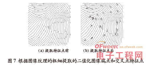 圖7 是最后根據圖像紋理的粗細二值化圖像,并根據端點和交叉點提取特征點。
