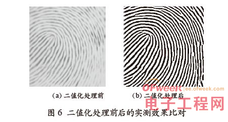 當每一點的值g(x,y)>p(x,y) 時,則賦值g(x,y)=1,否則賦值為0,以此得到二值化最終的結果,提取圖像進行實測效果的比對如圖6 所示。