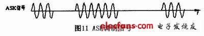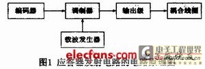 在應答器的發送器部分,首先由頻率穩定的石英晶體振蕩器產生所需的工作頻率的信號。振蕩器信號被饋送到由信號編碼的基帶信號控制的調制級。此基帶信號就是鍵控的恒壓信號,在此將二進制數據以串行碼的形式表示出來。根據調制器的類型,執行對振蕩器信號的ASK或FSK調制。此時基帶信號會被直接饋送到頻率合成器,再通過功率放大使調制后的信號達到所需電平,然后將調制后的放大信號輸出耦合到初級線圈。