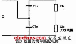 作為電磁能量的發射裝置一耦合線圈,必須考慮其匹配問題。耦合線圈在無線識別系統的工作頻率范圍內表現為阻抗ZL,為了實現與系統的功率匹配,必須通過無源的匹配電路實現阻抗轉換,使功率無反射地傳輸到耦合線圈。可以利用少量組件來實現相配的匹配電路。在現實應用中有多種不同的13.56MHz的無線識別系統采用了如圖3的匹配電路。