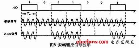 調制器由高速CMOS器件74HC00構成,實現ASK調制。調制波形如圖8所示。調制輸出信號經反向后直接送諧振回路。