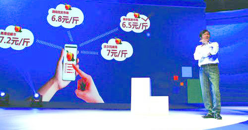 圖為長虹董事長趙勇在介紹如何使用手機遠程查看CHiQ冰箱