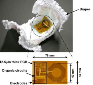 這是東京大學科學家研究出來的世界上第一個“無線有機傳感器系統”,這套傳感器是一次性的,非常柔軟。因為是有機材料做的所以也不會對人體產生損傷。重點是這個傳感器集成了無線射頻RFID技術,濕度傳感器可以實時監測寶寶PP的狀況,當需要更換尿布的時候,這套系統就會對固定設備發出信號提醒,這樣父母就不用老是打開看娃尿沒尿了。