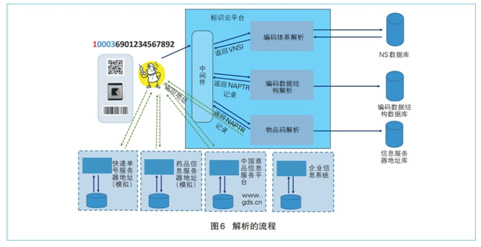 物聯網統一標識體系通過Ecode作為訪問異構系統的主鍵,要能夠通過一些技術手段,如數據載體標識符、編碼的長度、標簽的特征、Ecode Logo等多種方式識別是何種編碼,從而確定該編碼的的編碼體系標識(Numbering System Identifier NSI),并通過標識平臺來獲取跨系統的信息。