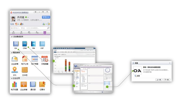 2、定制開發:imo私有云提供API接口,可以集成郵箱、ERP、CRM、OA等信息化系統入口,打造企業的“消息中心”。同時,可以根據企業的需求,定制開發各類功能。
