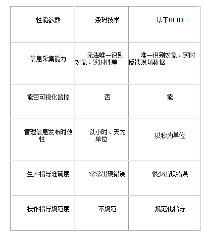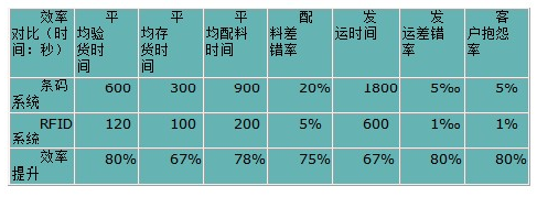 基于RFID與基于條碼的物流系統性能對比,如下表: