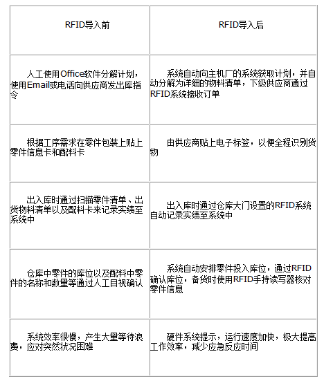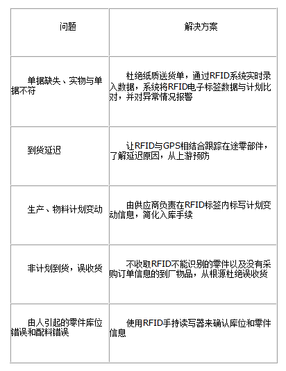 許多在多年的實際操作中一直困擾公司的問題也在RFID的應用中被解決。針對各種問題導入系統后的解決方案如下表所示。