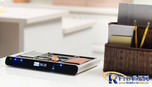 NFC托盤與NFC標簽之間的關系正是接觸與沒有接觸的事件觸發關系。Ken Mages進一步解釋,通過APP設定,NFC托盤可以提醒自己,8點時自己的錢包是否在托盤上,而不是離家前到處找。