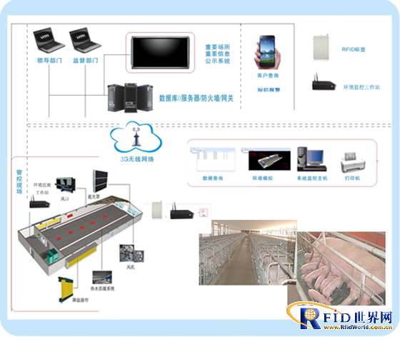 在規模化豬場中,豬舍的環境,如溫度、濕度、光照、有害氣體等對豬的生長、生產性能有重要的影響。中大百迅針對因溫濕度過高或過低造成的生長速度慢、出欄率低的情況,設計了一種基于物聯網RFID技術的溫濕度自動控制系統。采用RFID電子溫濕度傳感標簽,無線RFID讀寫器,環境監控工作站,對養豬場環境進行實時的溫濕度監控管理。通過控制器與系統之間的通信,控制鍋爐、風機等設備運行或停止,實現豬舍內溫濕度的自動調節,使之保持在豬群生長所需的最佳小氣候條件下。