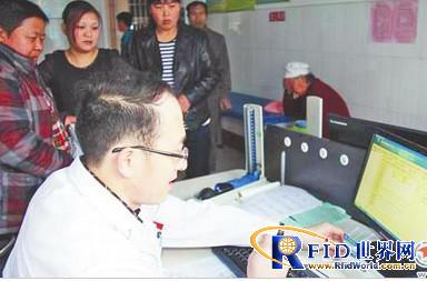 楊寨衛生院的醫生正在使用門診“一卡通”就診系統為患者開處方