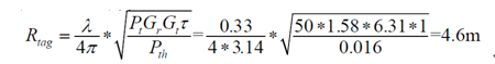 為8dBi,工作頻率為f =915MHz,且假定此時標簽芯片與天線完全匹配,其工作距離根據公式可得:
