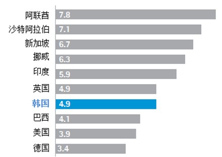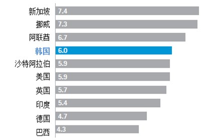 民眾希望政府能更高效。這一結果也反映了一個事實,即在WEF的全球競爭力指數2012-2013排名中,韓國是本次調查的十國中政府開支最浪費的國家。
