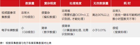 電子車牌是基于物聯網無源超高頻射頻識別技術的細分、延伸及提高的一種應用。它的基本技術措施是:利用RFID高精度識別、高準確采集、高靈敏度的技術特點,在機動車輛上裝有一枚電子車牌標簽,將該RFID電子車牌作為車輛信息的載體,并在通過裝有經授權的射頻識別讀寫器的路段時,對各輛機動車電子車牌上的數據進行采集或寫入,達到各類綜合交通管理的目的。這項技術可突破原有交通信息采集技術的瓶頸,實現車輛交通信息的分類采集、精確采集,抓住交通控制系統信息源準確的關鍵。表1是電子車牌與視頻采集數據對比表。
