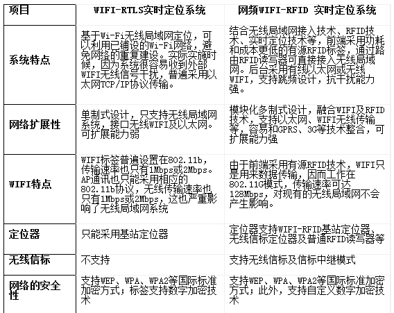 目前基于傳統的RFID定位技術缺少核心定位算法,只是依靠RFID讀寫器做區域定位,而且盲點很多,不能提供精確定位。網頻推出的WIFI-RFID實時定位系統解決方案,融合WIFI、RFID特點,后臺采用基于RSSI信號強度精確定位算法,射頻前端采用功耗和成本更低的有源RFID系統。下面側重就網頻的WIFI-RFID 實時定位系統解決方案和現有的wifi定位做簡要對比說明。