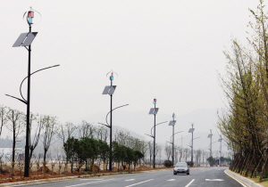 在南方地區,由于受日照條件的制約,純太陽能燈往往不能完全滿足一年四季的照明需要。而這種風光互補路燈最顯著的特征就是可以綜合利用風力和太陽能,“合力”為路燈供電。它的核心技術就是狀似轉經筒的風機。這種風機高靈敏,風力只需達到微風級的2米/秒即可發電。白天,風機和太陽能電板合力發電,儲存到蓄電池內,夜晚,逆變器將蓄電池中存儲的直流電轉變為交流電,路燈就被點亮。每次蓄電池被充滿電,可用三晚。