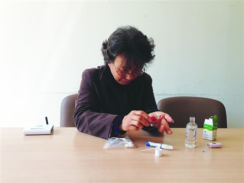 如今,錢阿姨的體重又恢復到120斤,血糖控制穩定。日前,記者來到她家中,她正好打算測餐后血糖。只見她熟練地安裝好一次性針頭和試紙,酒精棉擦拭左手無名指尖,用采血筆輕戳一下,試紙析血后很快就顯示出了血糖讀數,同時她的手機也收到了提醒短信。“只要配套路由器插在電源上,每次測出的數據就會自動通過它傳輸到瑋琪后臺,后臺就會發來短信,告訴我血糖是高了還是低了,要注意些什么。后臺還會留存我的數據,孩子們用IPAD登陸賬戶,就能看到我每天的動態血糖值。”