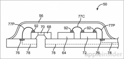 蘋果“配備環境傳感器的電子設備”專利描述了一種內置多種傳感器的組件。這種組件可以與柔性電路板連接,其中的環境傳感器可以測量體溫、壓力、濕度和聲音等數據。電路板在設備外殼內,而集成的組件需要與外界的空氣、聲音和環境物質接觸,這樣才能允許與系統傳感器通信。