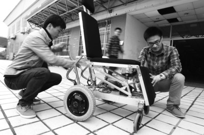 機械與汽車工程學院大四學生張帥領導的團隊,制作出“多功能康復機器人”,“康復機器人集成了智能行走、履步康復、多維度柔性調節椅背、多位姿調節等多項功能,是為行動不便的老年人、殘疾人以及肢體受傷的患者設計的,能用機器人代替人的勞動,減輕人工理療難度。 ”張帥介紹說,與普通的輪椅最大區別是,在這個康復機器人的幫助下,使用者能坐能躺還能“站”起來。
