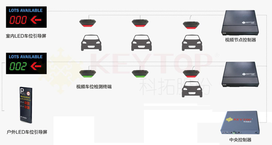 針對地下停車場,視頻車位引導系統是通過在停車場的每個車位上前方安裝視頻車位檢測終端,對停車位的圖像信息進行實時抓拍,并將抓拍到的車位圖像信息通過網線傳輸給視頻節點控制器進行車位狀態識別,再把識別完畢的車位狀態發送至視頻車位檢測終端集成的指示燈進行紅/綠變換顯示,并與中央控制器進行通訊。