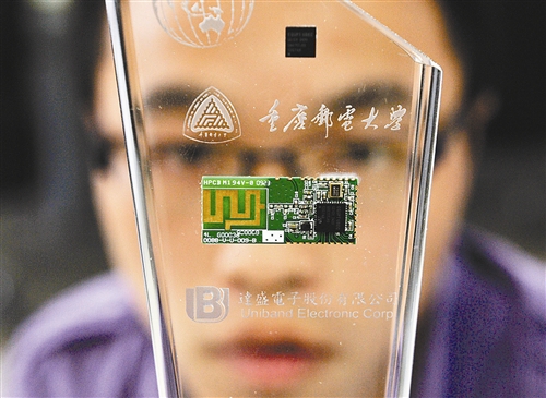 重慶郵電大學工業物聯網與網絡化控制教育部重點實驗室,技術人員向大家展示渝“芯”一號芯片。