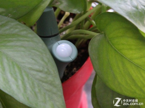 當電池安置完成之后,在另一個分枝頂部會閃爍綠色小燈,由此可以確定電池安裝正確,可以下一步操作。反之則需要重新安裝電池或尋找其他問題。另外,該位置也是監測陽光的部分,因此在插入土壤之后,其不要被葉子遮擋陽光,避免影響監測數據的準確性。