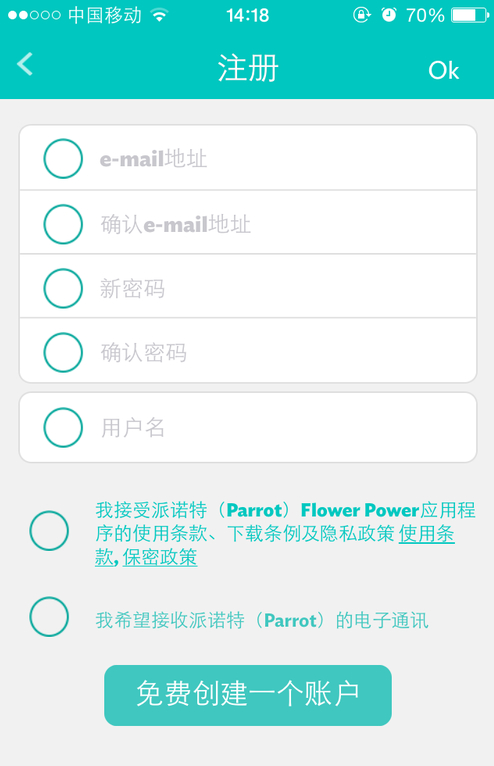 安裝完成之后,用戶即可進入到應用程序當中,但是你需要首先進行注冊或登錄,在注冊過程中填寫Emai、密碼以及用戶名即可完成。進入到應用程序中,Flower Power應用中擁有超過6000種植物的數據信息,可以從中了解到植物名稱、種類、環境喜好以及種植方法,因此即使你沒有Parrot Flower Power監測設備也可以考慮安裝一款“Flower Power”。
