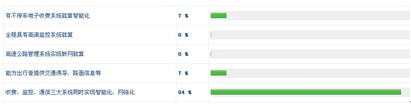 另外,從網友的回答可以看出,ETC與出行者信息服務這兩項與出行者相關的系統是否實現智能化,成為判斷是否為智能交通的重要因素,而且是急需解決的問題,對道路監控和高速公路管理則不太關心。