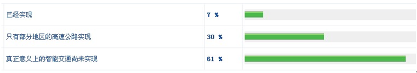 近年來,中國在ETC建設上步伐較快,認為只要有ETC就算是智能交通的網友,會比較樂觀的認為中國高速公路智能交通已經實現。但大部分網友對智能交通仍然有較高要求,認為只有三大系統都實現智能化才能算是真正意義上的智能交通。