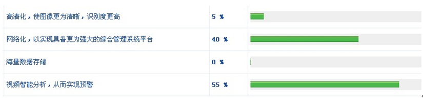 圖像高清化、管理網絡化、視頻分析智能化,這三點都是高速公路監控系統的發展趨勢,但是大部分網友認為最急需實現的是視頻智能分析這一項。究其原因,通過智能分析實現預警,能及時檢測出交通異常事件,能配合交通誘導系統疏導交通等,這是監控系統對出行者最直接的服務,關系到出行者切身利益。