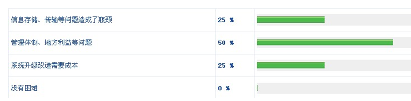 當問到"您認為高速公路視頻監控實現聯網最大的困難在于什么"時,25%的網友認為是"信息存儲、傳輸等問題造成了瓶頸",25%的人選擇了"系統升級改造需要成本",50%的網友則認為是"管理體制、地方利益等問題"。(見圖11)