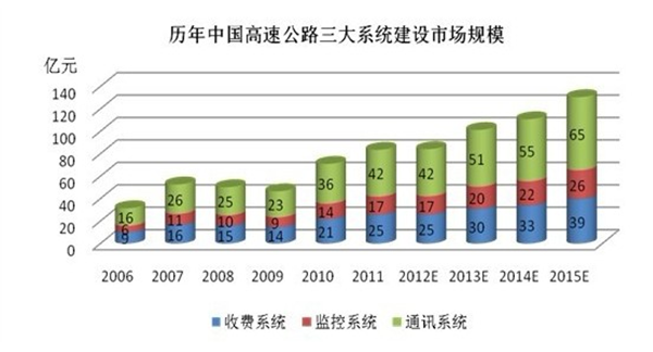 圖15 歷年中國高速公路三大系統建設市場規模