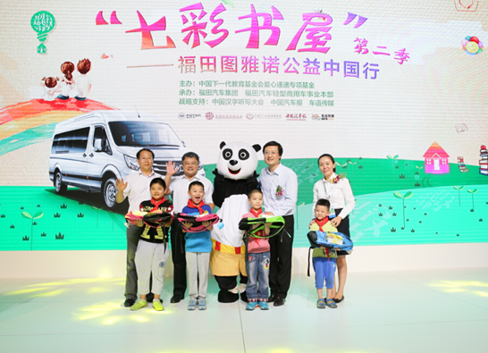 “七彩書屋”公益中國行第一季是由福田商務汽車發起,中國下一代教育基金會愛心速遞專項基金主辦的全國性公益送書活動,通過為貧困地區的孩子們送去書籍和知識,幫助他們更自信、健康的成長。在社會各界的廣泛關注和支持下,七彩書屋第一季已在云南昆明、內蒙古通遼、四川雅安、北京、山東煙臺等地共建立了17所愛心公益“七彩書屋”,為無數需要幫助的貧困兒童帶去關愛。據悉,“七彩書屋”公益中國行第二季活動中,福田商務汽車將聯合中國漢字聽寫大會、車語傳媒和中國汽車報,沿北京、上海、山東、廣東、浙江、江蘇一線再建12所固定七彩書屋,并將帶來全新的圖雅諾“移動七彩書屋”,以移動圖書館的形式給孩子們呈現更美好的知識世界。