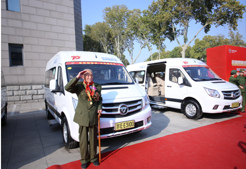 王黙村老人與俄羅斯總統普京乘坐過的福田圖雅諾元首國賓車合影