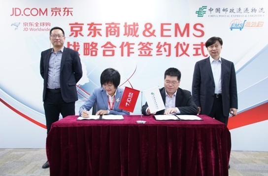 11月25日(ri),京東與中國(guo)郵(you)政(zheng)速(su)遞物流(liu)股份有限公司(以下簡稱“中國(guo)郵(you)政(zheng)速(su)遞物流(liu)”)就雙方(fang)在全球范圍內的跨(kua)境(jing)電商業務(wu)簽訂了戰略合(he)作協議,雙方(fang)將(jiang)在境(jing)外(wai)倉(cang)儲、小包裹跨(kua)境(jing)直郵(you)等方(fang)面進行深(shen)入(ru)合(he)作。京東集團高級副總(zong)裁李永和(he)、中國(guo)郵(you)政(zheng)速(su)遞物流(liu)股份有限公司副總(zong)經理楊建(jian)國(guo)出席(xi)了簽約儀(yi)式。