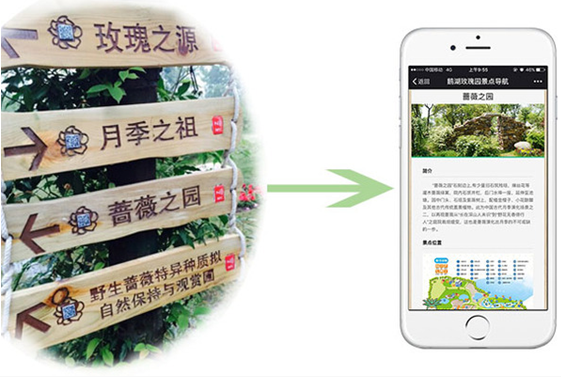 當游客到達景點區時,通過電子終端設備、射頻識別技術和后臺中央數據庫,進行數據匹配,形成統一的網絡控制系統,將各景點、設施、文化背景甚至標志植物等信息以文字、圖片、語音、視頻、VR等方式儲存,游客可通過二維碼掃描、微信搖一搖、NFC靠一靠等方式自行瀏覽。自助導覽為游客提供智能的、全方位的游覽支持,在一定程度上是代替了導游的講解工作。