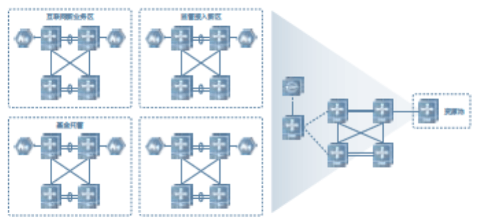 極簡分區:金融數據中心場景下遇到需要新建分區的需求時,可以像業務部門新建業務利用虛擬化技術一樣,利用極簡分區特性虛出來一個邏輯隔離分區為該業務提供所需要的網絡分區。解決了傳統數據中心面臨新建分區周期長、投資大、管理成本高的問題。
