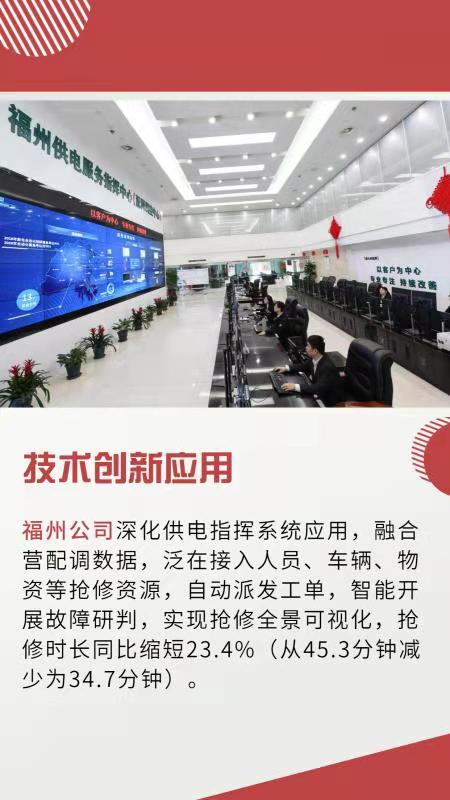 通過改變內部的因子來助力泛在電力物聯網建設的創新創效。國網福州供電公司深化供電指揮系統應用,融合營配調數據,泛在接入人員、車輛、物資等搶修資源,自動派發工單,智能開展故障研判,實現搶修全景可視化,搶修時長同比縮短23.4%。國網廈門供電公司試點完成全量高壓用戶電量電費智能自動審核,自動發行率超90%,大幅提升電量電費審核風險控制能力,跨越式提升電量電費審核效率。國網龍巖供電公司試點開展機器人智能批量開票,200張發票打印時間從2個工作日減少到2個小時,提高光伏購電結算效率,為基層減負提供有力支撐。國網泉州供電公司開展基于一二次深度融合與物聯應用的配網故障智慧處理,實現配電線路短路、接地、缺相等全類型故障的正確研判、精確定位、主動快速隔離,破解小電流單相接地“百年難題”,單相接地故障保護正動率95.5%。國網莆田供電公司建成湄洲島“風光儲充”一體化海島微電網,提高海島電網可靠性、安全性,滿足用戶電能質量要求。