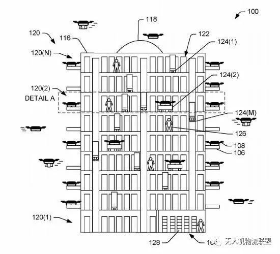 2014年底,亞馬遜的另一項專利“空中物流中心”獲批。“空中物流中心”是想要在指定區域的上空建立一種懸浮倉,然后用一種小型的接駁“飛船”將貨物運送到目標地附近的懸浮倉,用無人機完成最后一公里配送。