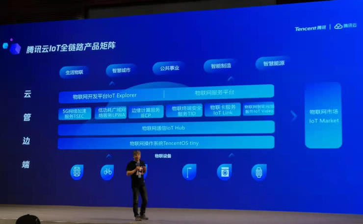在此期間,騰訊還分別在自家5月、11月在云南、上海兩地舉辦的騰訊全球數字生態大會上,以及12月的騰訊云IoT生態峰會上,集中對外推廣了IoT整體產品部署——“全棧IoT產品和服務”。