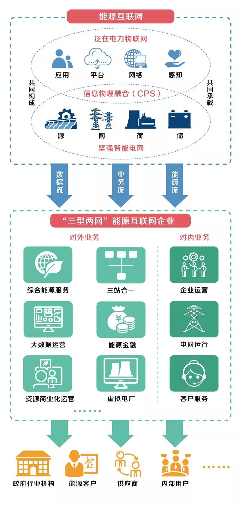 背景上,從國家戰略、經濟發展、公司經營形勢、電網發展形態等方面回答了為什么要建設泛在電力物聯網、國網為什么要轉型;架構上,包含感知層、網絡層、平臺層、應用層四層結構;技術上,廣泛應用大數據、云計算、物聯網、移動互聯、人工智能、區塊鏈、邊緣計算等信息技術和智能技術;時間上,2021年初步建設泛在電力物聯網,2024年務期必成。屆時,能源流、業務流、數據流“三流合一”的能源互聯網將形成共享共治生態圈,為經濟發展注入活力。
