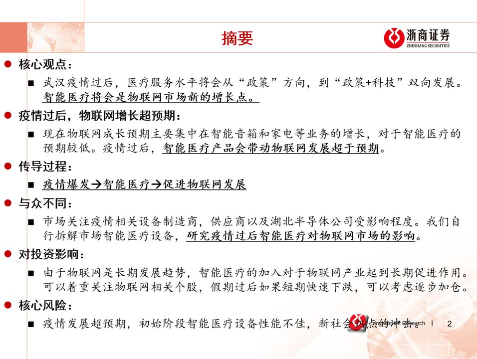 4,風險提示:疫情發展超于預期,初始智能醫療設備性能不佳。
