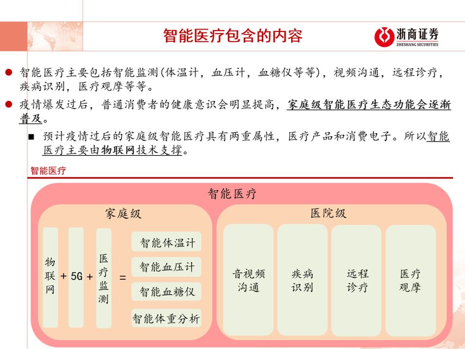 1,疫情過后,物聯網增長超預期:當前物聯網成長預期主要集中在智能音箱和家電等業務的增長,對于智能醫療的預期較低。預計疫情過后,智能醫療產品會帶動物聯網發展超于預期。