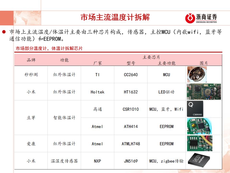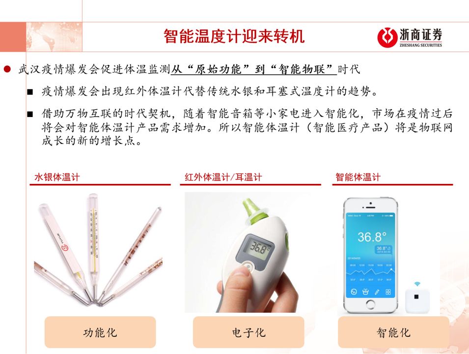 3,與眾不同:市場關注疫情相關設備制造商,供應商以及湖北半導體公司受影響程度。我們自行拆解市場智能醫療設備,研究疫情過后智能醫療對物聯網市場的影響。