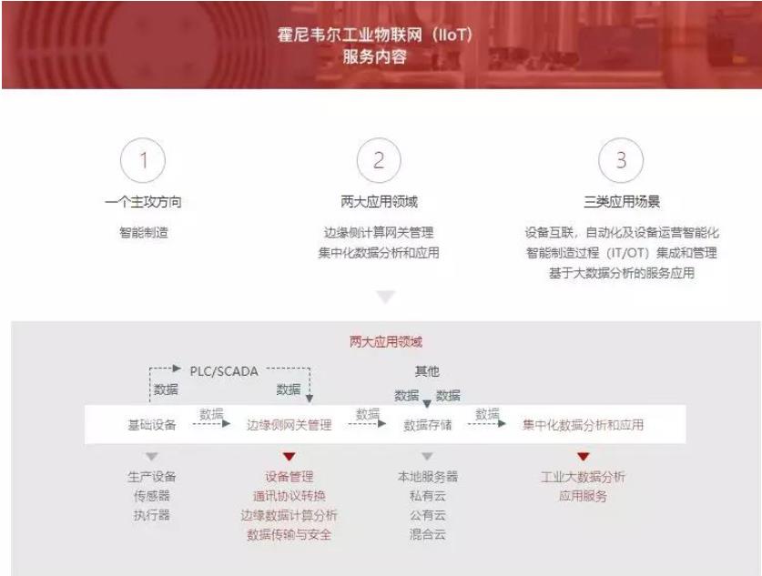 企業智聯業務:其以“1-2-3”作為戰略路線,即以“智能制造”為一個主攻行業方向,通過“邊緣側計算”和“集中化數據分析”兩大應用領域,實現“設備互聯及可視化”、“智能制造過程集成與管理”(IT/OT集成)和“基于大數據分析的服務”這三類應用場景的落地。