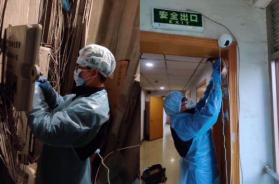 社區是本次疫情阻擊戰的重要戰場。為把防控工作做細做好,街道社區紛紛提出安裝視頻監控的需求。杭州某小區發現確診病例,為實時監測各戶動態,尤其是疫情嚴重地區返杭人員的隔離情況,需新增十幾個視頻監控設備。寬帶光纜要經過樓道層層布放,杭州移動裝維人員“全副武裝”抵達現場,樓上樓下相互配合,走一層穿一層。他們每天穿梭在街道和小區,為用戶進行寬帶故障修復。