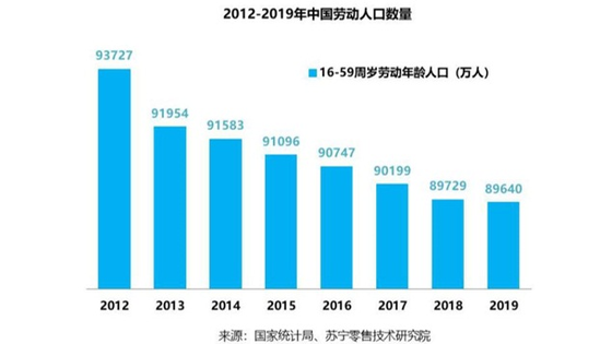 自2012年起,我國的適齡勞動力人口連續8年下降。2018年末16歲至59歲(含不滿60周歲)勞動年齡人口為8.97億人,首次跌破9億人口大關。伴隨著人口紅利的消退,物流企業開始面臨人工成本高、配送難的現狀。對物流企業來說,如何解決用工成本高、末端配送難,讓快件更快到達消費者手中成為首要問題。